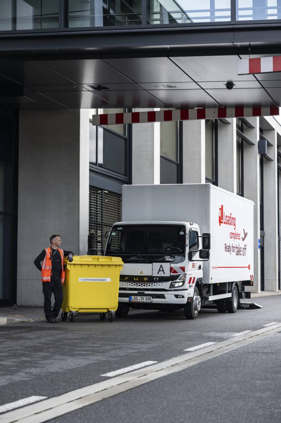 For one and a half years now, Berlin Brandenburg Airport GmbH has been relying on electromobility as part of its sustainability strategy for the handling of its internal waste and disposal logistics – as it turns out, this is exactly the right job for the FUSO eCanter 7C18e.