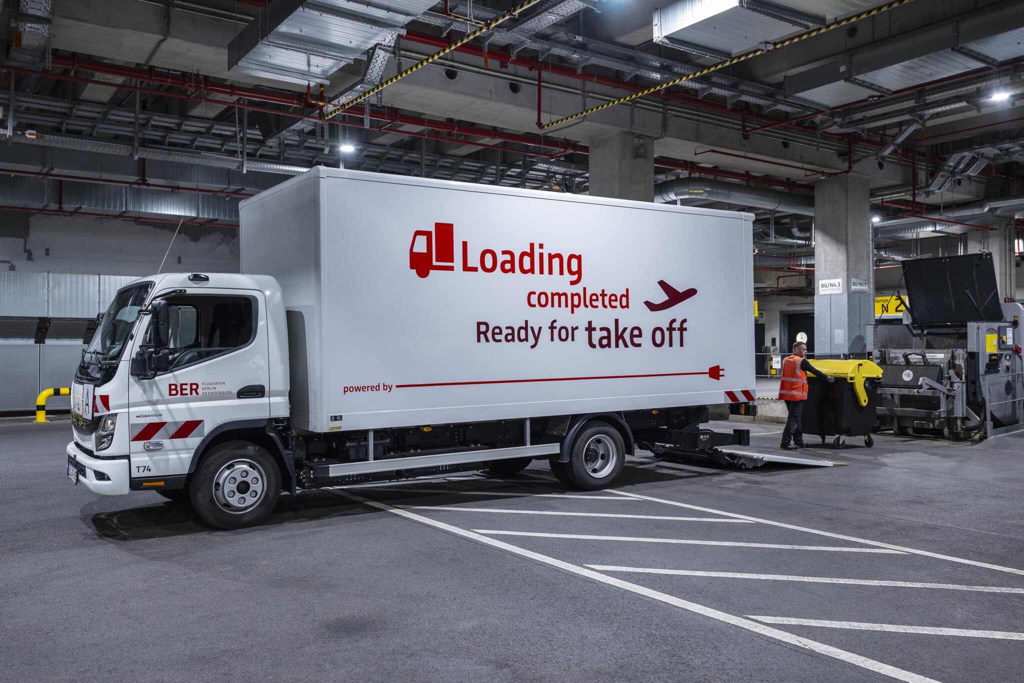 For one and a half years now, Berlin Brandenburg Airport GmbH has been relying on electromobility as part of its sustainability strategy for the handling of its internal waste and disposal logistics – as it turns out, this is exactly the right job for the FUSO eCanter 7C18e.