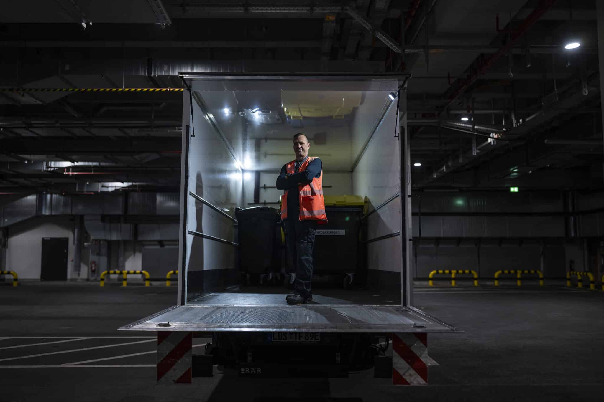 A look at the balance sheets shows that the waste management sector has handled a total of almost 3,300 tonnes of waste during the said period, divided into 39 types known as fractions. Smooth, flexible, fast, effective and efficient intra-company logistics is a must in view of these figures. The fact that it has been operating purely electrically since May 2024 is also fully in line with the airport’s sustainability strategy. “We are already used to electromobility thanks to the car pool for employees, so I thought in the course of a new acquisition that this would have to be possible with an electric truck,” recalls Artur Heldt.