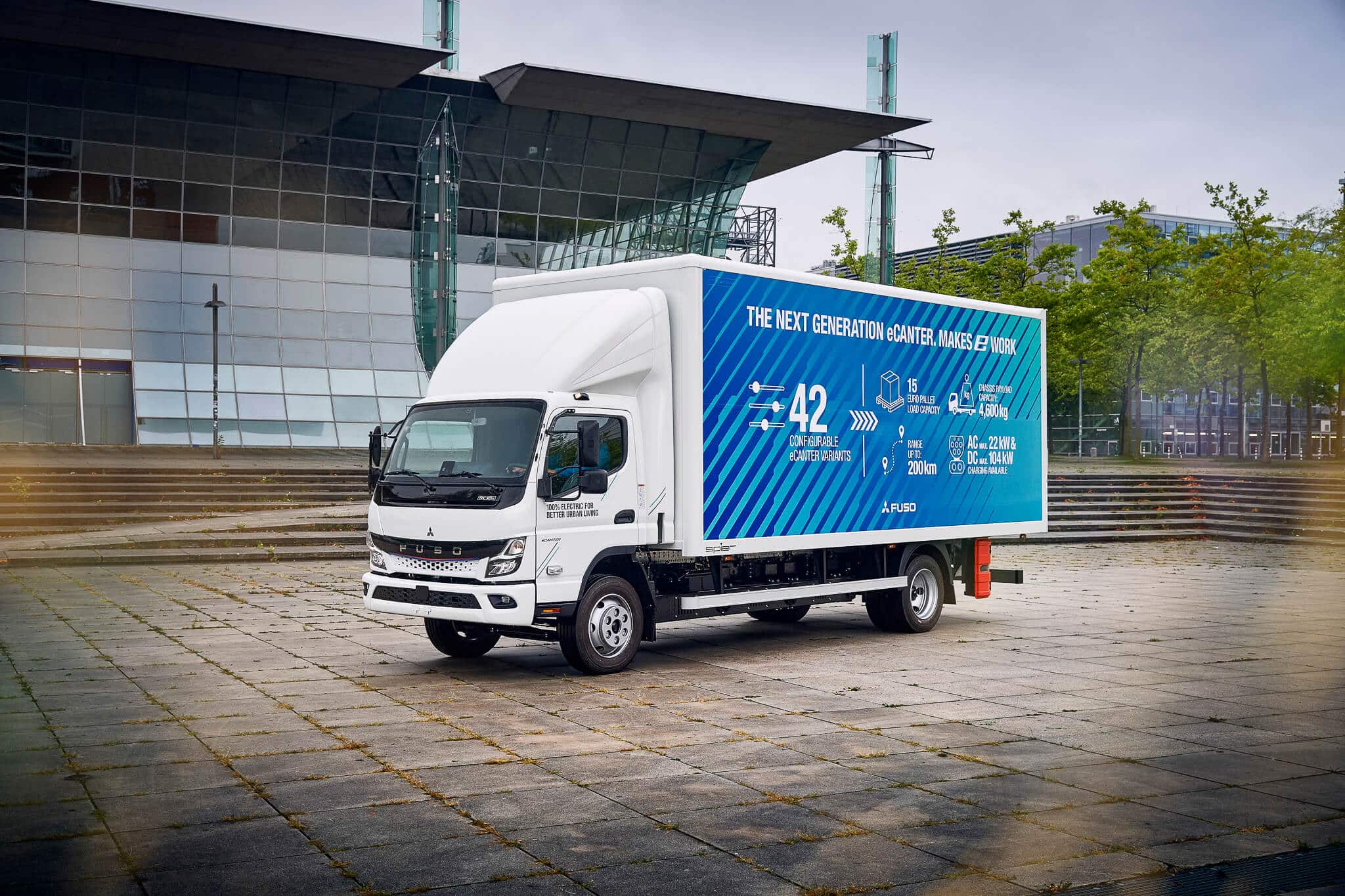 Beroende på vald hjulbas utrustar FUSO den med batteripaket i storlek S och M. Dess elmotor har omräknat 150 HK (110 kW). Med en räckvidd */** på upp till 140 km (M-batteri) resp. 70 km (S-batteri) kan nästa generations eCanter 4,25 t utan problem avbilda den genomsnittliga dagliga användningsprofilen för en Canter 6,0 t med dieseldrift.